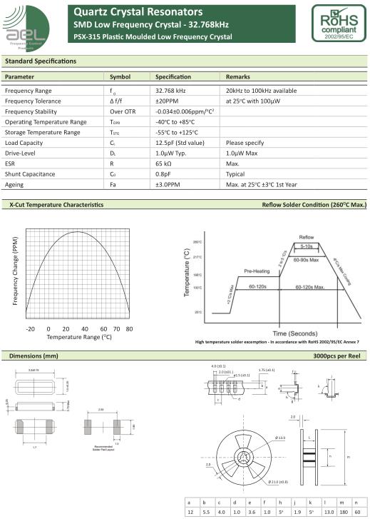 AEL晶振規格 | 單位 | PSX-315晶振頻率范圍 | 石英晶振基本條件 | |