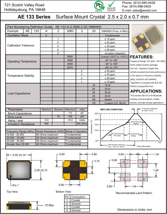 Example | AE | 133 | A | 2 | 3060 | 2 | 20 | 16M0000 (Freq. in MHz) |