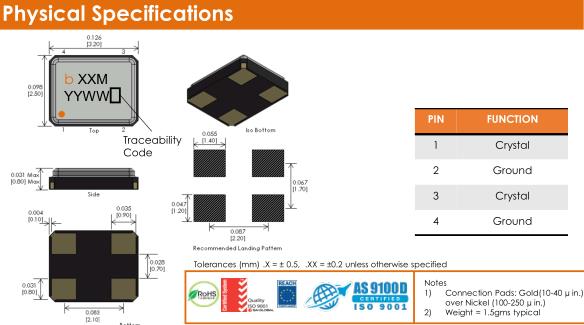 Equivalent Series Resistance (max) | 10.0 – 16.0 MHz | 100 | Ω | |