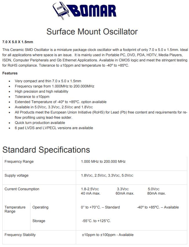 Bomar晶振公司不斷的推出滿足市場的Bomar石英晶振,石英晶體振蕩器,OCXO晶振等元件,為研發出更小封裝的進口Bomar石英晶振及具備低相位晶振,他們付出了極大的努力,并且研發出的產品通過ISO認證,質量有保障,價格合理.Bomar晶振,B1325-AACS3T-10.000000晶振,時鐘振蕩器.