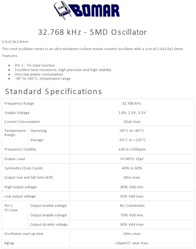 Frequency Range | 32.768 kHz | |