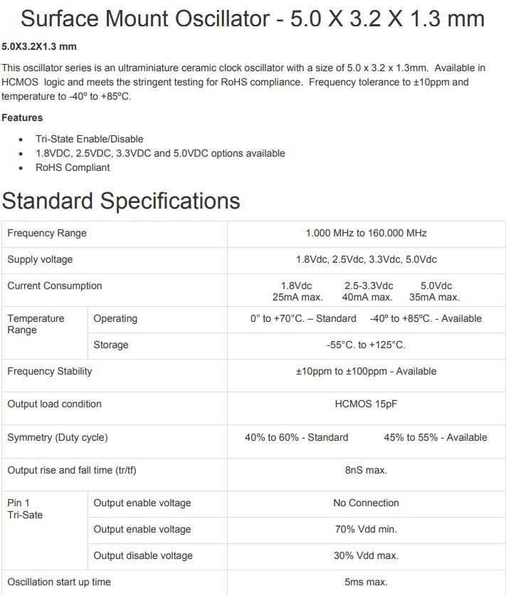 Pin 1 Tri-Sate | Output enable voltage | No Connection |