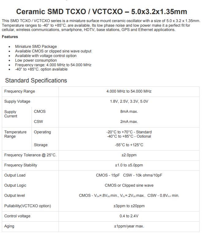 Frequency Stability | ±1.0 to ±5.0ppm | |