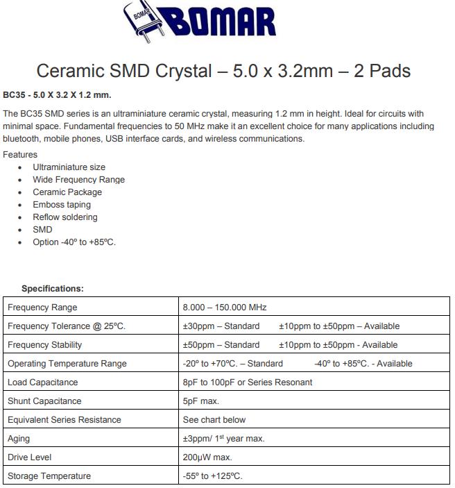 Frequency Stability | ±50ppm – Standard ±10ppm to ±50ppm - Available |