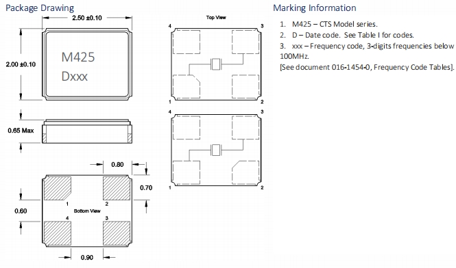 425F39B025M0000 | CTS晶振 | 425 | MHz Crystal | 25MHz |