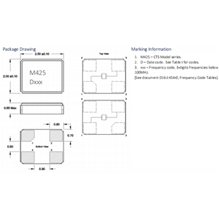 425F35E020M0000 | CTS晶振 | 425 | MHz Crystal | 20MHz |