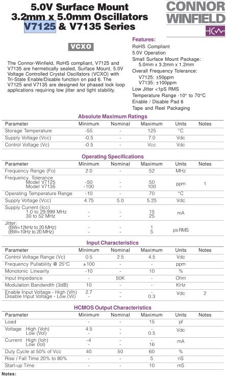 ConnorWinfield晶振,V7125晶振,V7125-020.0M晶振
