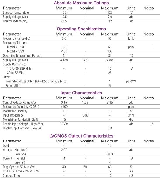 康納溫菲爾德晶振,V7333晶振,V7333-20.00MHz晶振