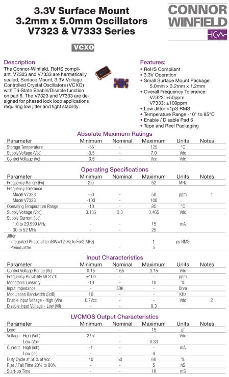 康納溫菲爾德晶振公司是美國一家專業生產進口石英晶體振蕩器,石英晶體的晶振品牌,客戶遍布世界五十多個國家并得到所有用戶的一致認可.康納溫菲爾德晶振,V7333晶振,V7333-20.00MHz晶振.