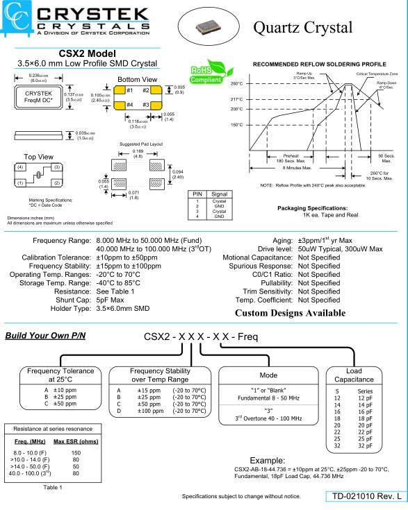 Crystek晶振,CSX2晶振,CSX2AA320-12.000M晶振