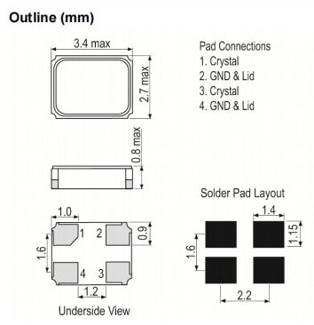 Size/Dimension尺寸 | 3225mm | 安裝方式MountingStyle: | SurfaceMount |