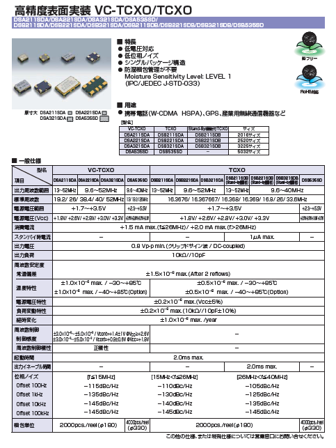 更多>>1XTW26000CGA料號對應KDS溫補晶振型號DSB321SDA26M