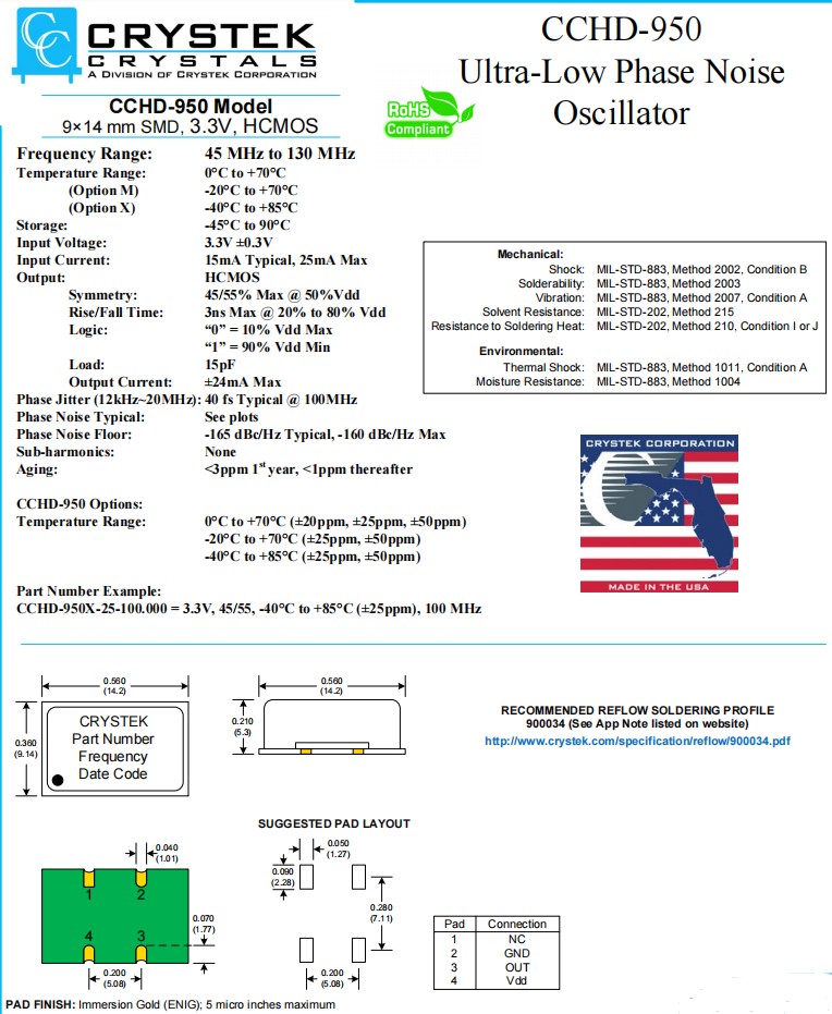 CCHD-950X-50-100.000 | Crystek晶振 | CCHD-950 | XO (Standard) | 100MHz | ±50ppm |