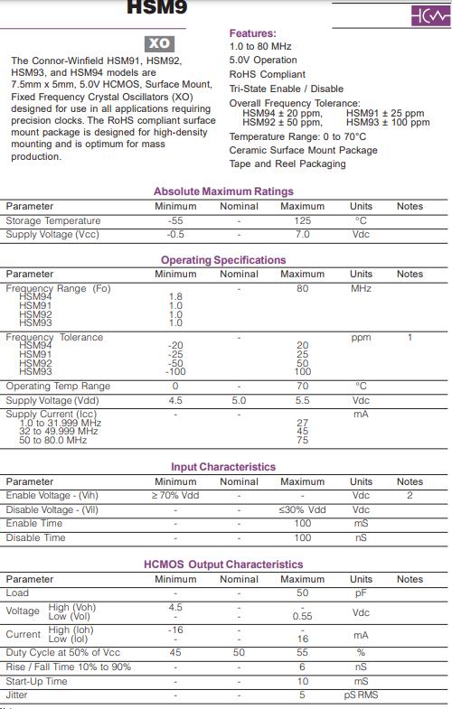 HSM93-050.0M | Connor-Winfield振蕩器 | HSM9 | 50MHz | 0°C ~ 70°C |