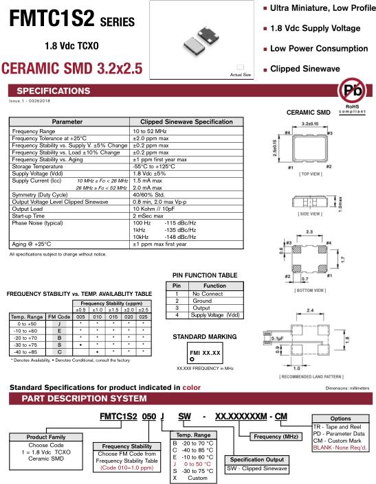 - 產(chǎn)品描述:FMI晶振,FMTC1S2晶振,FMTC1S2050JSW-16.000M-CM晶振,溫補晶振(TCXO)產(chǎn)品本身具有溫度補償作用,高低溫度穩(wěn)定性:頻率精度高0.5PPM-2.0PPM,工作溫度范圍:-30度至85度,電源電壓:1.8V-3.3V之間可供選擇,產(chǎn)品本身具有溫度電...