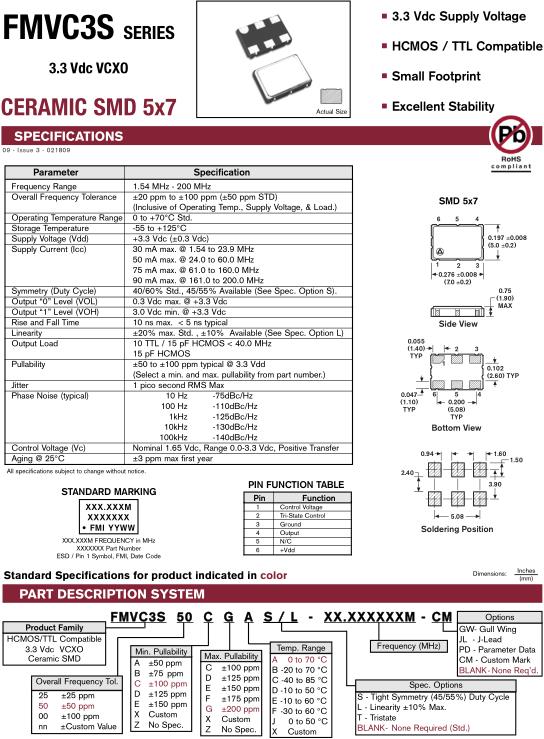 Control Voltage (Vc) | Nominal 1.65 Vdc, Range 0.0-3.3 Vdc, Positive Transfer | |