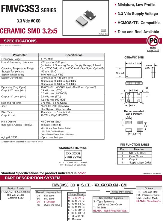 FMI Crystal成立于1971年,主要研發生產FMI晶振,TCXO振蕩器,有源晶振等產品,同時專注于為各行業的各種電子系統提供頻率和時序控制的工程解決方案.FMI晶振,FMVC3S3晶振,FMVC3S300AS/-24.000M-CM晶振.