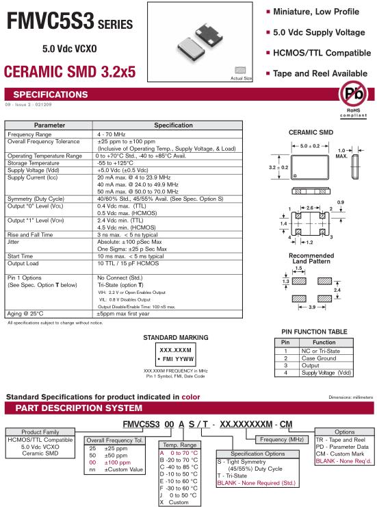 FMI晶振,FMVC5S3晶振,FMVC5S300AS/T-16.000M-CM晶振