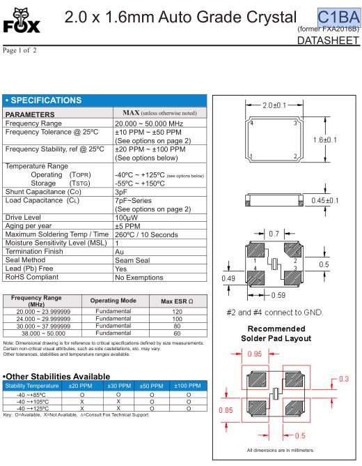 FOX晶振 | 單位 | C1BA晶振 | 石英晶振基本條件 |