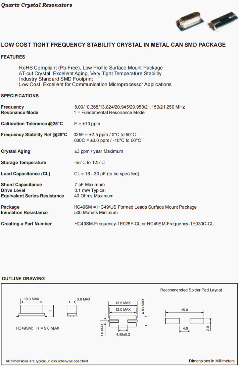 包裝 | HC49SM = HC49/US Formed Leads Surface Mount Package |