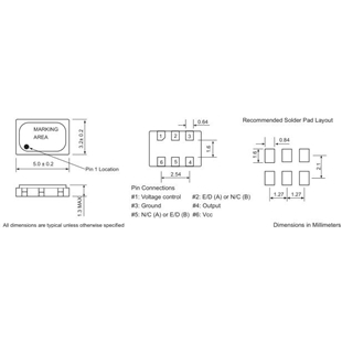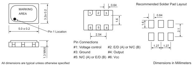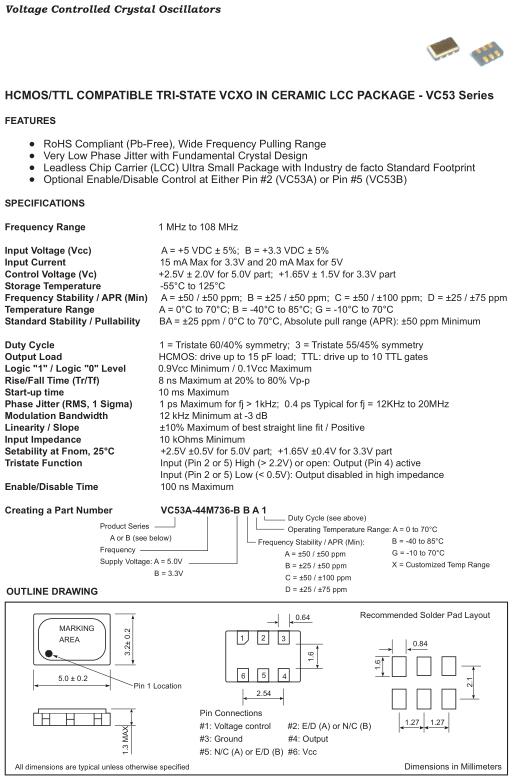 Control Voltage (Vc) | +2.5V ± 2.0V for 5.0V part; +1.65V ± 1.5V for 3.3V part |