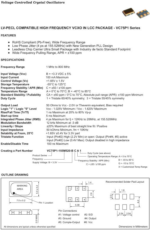- 產(chǎn)品描述:Fortiming晶振,VC75P1晶振,VC75P1-26M520-BCA1晶振,壓控晶振(VCXO),壓控石英晶體振蕩器基本解決方案,PECL輸出,輸出頻率60MHz到200MHz之間,出色的低相位噪聲和抖動,三態(tài)功能,應(yīng)用:SDH/SONET,以太網(wǎng),基站,筆記本晶振應(yīng)用...