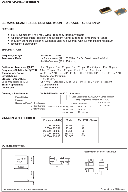 富通晶振,XCS64晶振,XCS64-13M000-1A20C18晶振