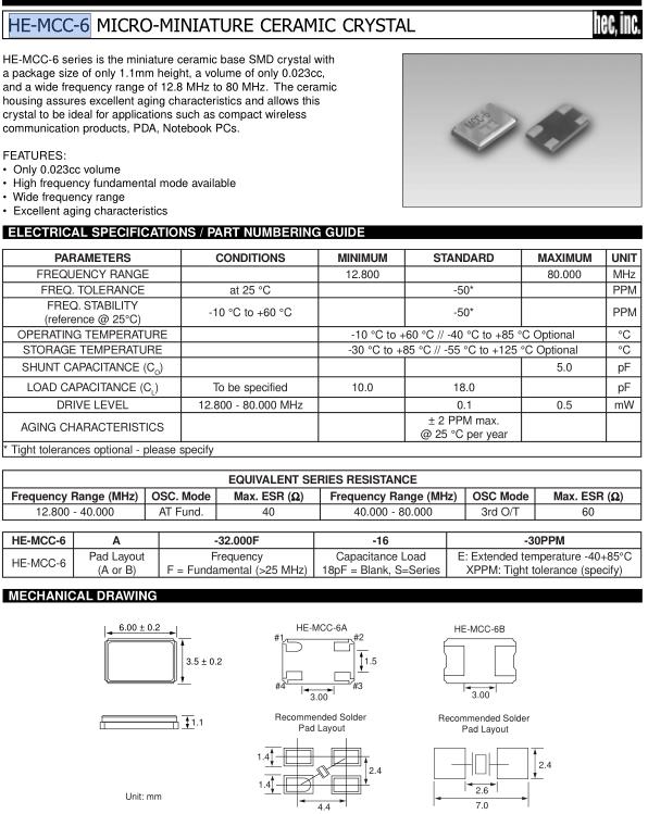 HEC晶振,HE-MCC-6晶振,壓電陶瓷晶振