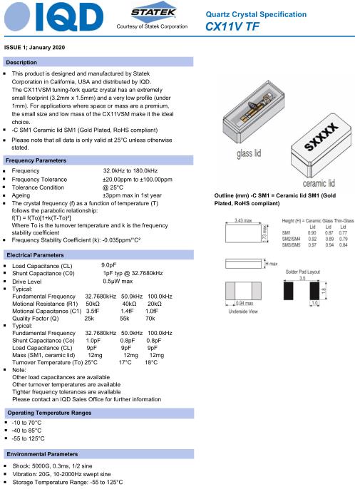 伊克德晶振,CX11VTF晶振,32.7680kHz-CX11VTF-C-SM1100晶振