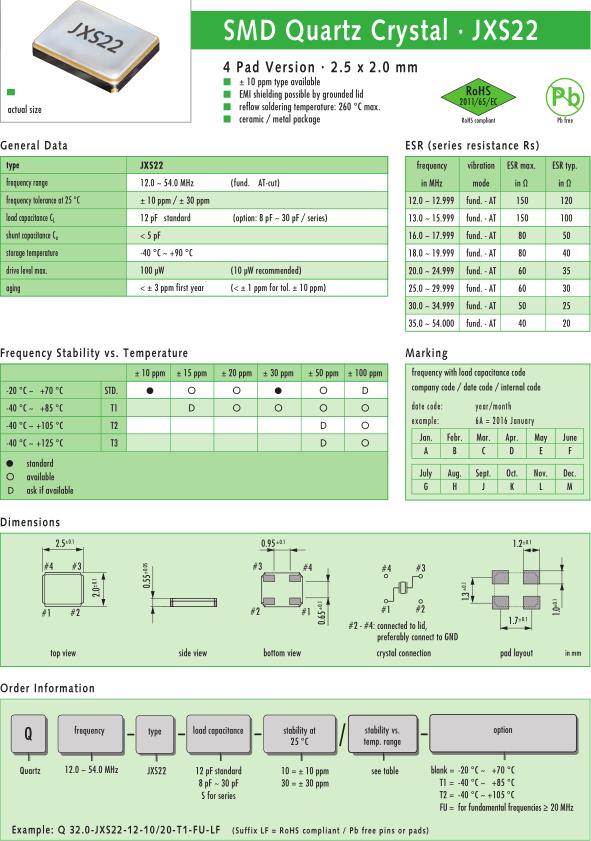 Jauch晶振規(guī)格 | 單位 | JXS22晶振頻率范圍 | 石英晶振基本條件 |