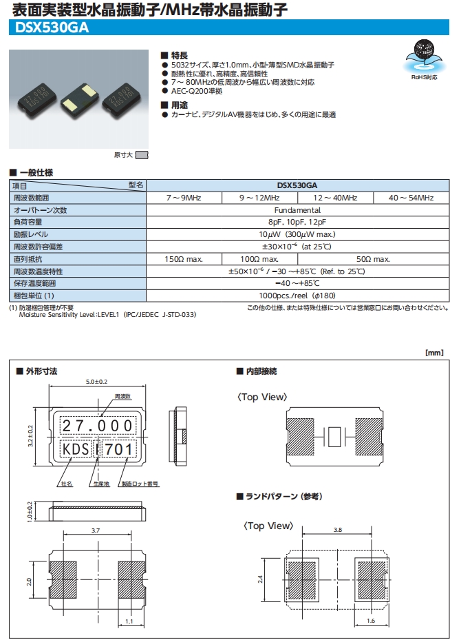 KDS晶振 | 1C710000CE1A | DSX530GA | 5032 | 10.000MHZ | ||
