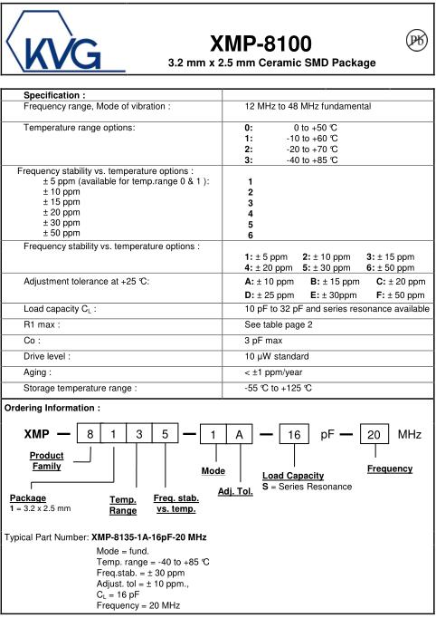 KVG Crystal專業研發生產KVG石英晶振,KVG貼片晶振,有源晶振,VCXO晶振,OCXO晶振,TCXO晶振等頻率元件.KVG晶振,XMP-8100晶振,XMP-8135-1A-16pF-20MHz晶振.