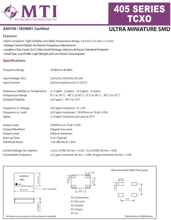 MTI Crystal專業生產米利倫有源晶振,貼片晶振,石英晶振設計和制造的行業領導者的技術人員,在生產石英晶體該領域MTI晶振集團擁有豐富的經驗.米利倫晶振,405晶振,SMD晶振.