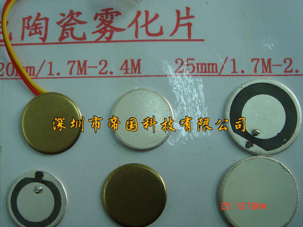 - 產品描述:帝國科技公司供應霧化片,直徑從 16mm,20mm,25mm ,頻率有1,7M /2,4M 霧化片具體參數,陶瓷霧化片,加濕器霧