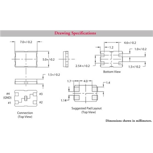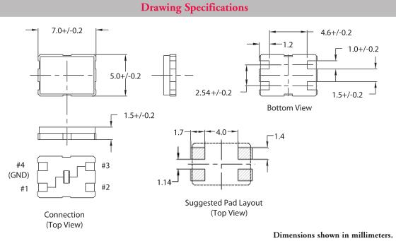 Operating Temp. Characteristics | -20°C to 70°C ±50 ppm or specify |