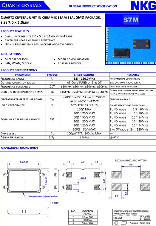 NKG晶振,S7M晶振,S7M-12.0000F-18E2-EXT晶振