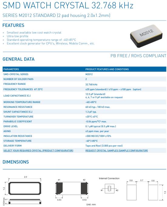 PETERMANN晶振,M2012晶振,M2012-32.768kHz-±20ppm-12.5pF晶振