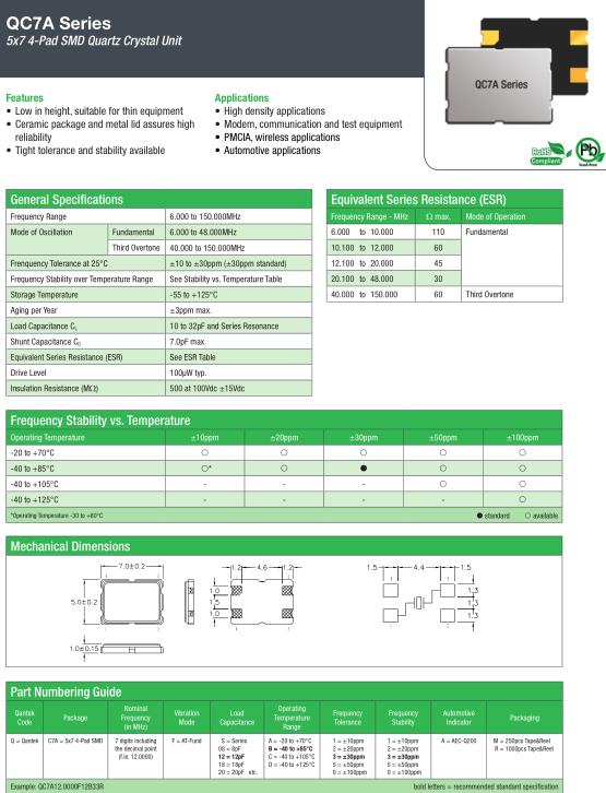 General Specifications-QANTEK晶振 | QC7A晶振 | |