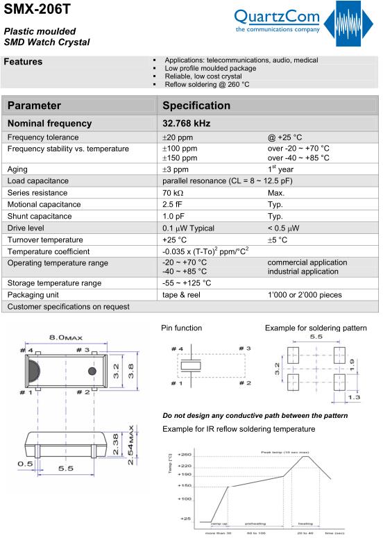 Parameter -Quartzcom晶振 | Specification-SMX-206T |
