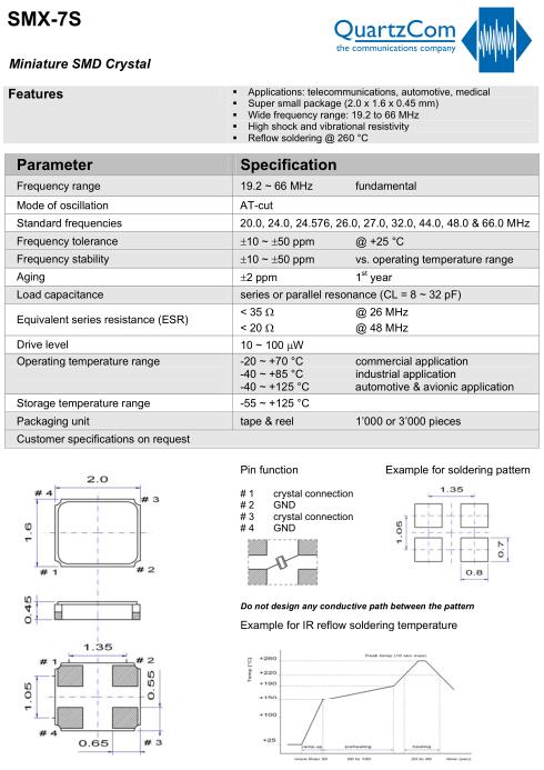 QuartzCom晶振規格 | 單位 | SMX-7S晶振頻率范圍 | 石英晶振基本條件 |