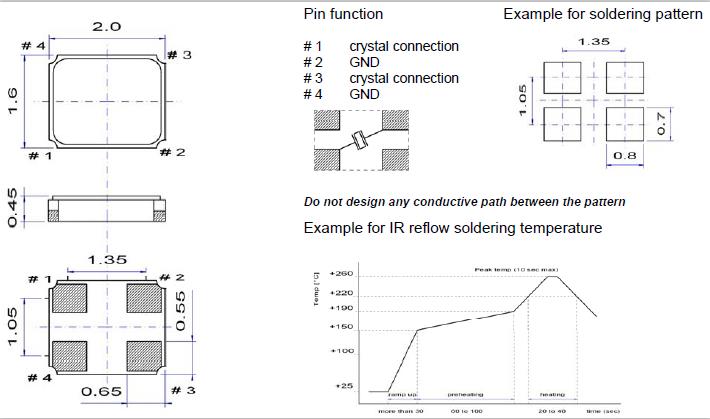 加熱包裝材料至+150°C以上會破壞產品特性或損害產品。如需在+150°C以上焊接晶體產品,建議使用SMD產品。在下列回流條件下,對晶體產品甚至SMD產品使用更高溫度,會破壞產品特性。建議使用下列配置情況的回流條件。安裝這些產品之前,應檢查焊接溫度和時間。同時,在安裝條件更改的情況下,請再次進行檢查。如果需要焊接的石英晶體產品在下列配置條件下進行焊接,請聯系我們以獲取耐熱的相關信息。