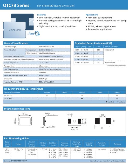 Quarztechnik晶振,QTC7B晶振,QTC7B12.0000FBT3I30R晶振