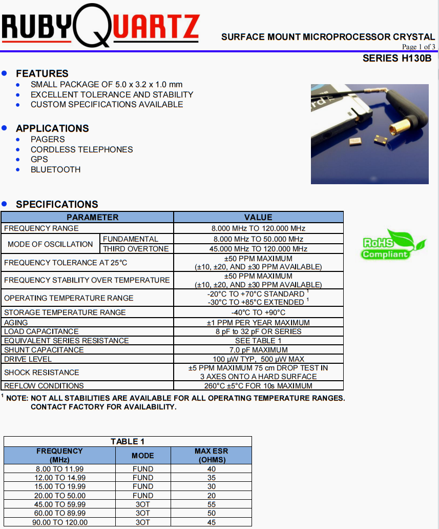 - 產品描述:H130B-27.120-20-TR晶振,Rubyquartz四腳晶振,移動通訊晶振,美國Rubyquartz晶振公司,高精度晶振,無源晶振,貼片晶振,高精度晶振,6G通訊設備晶振,無線傳輸晶振,局域網晶振,5032晶振,高品質晶振,SMD晶振,石英...