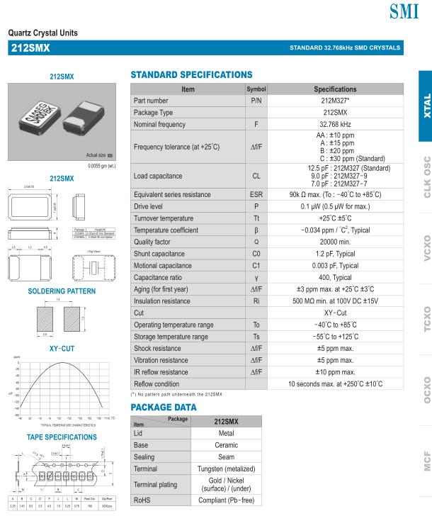 SMI晶振,212SMX晶振,兩腳貼片晶振