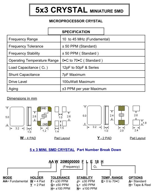 Load Capacitance ( C L ) | 12pF to 50pF & Series |