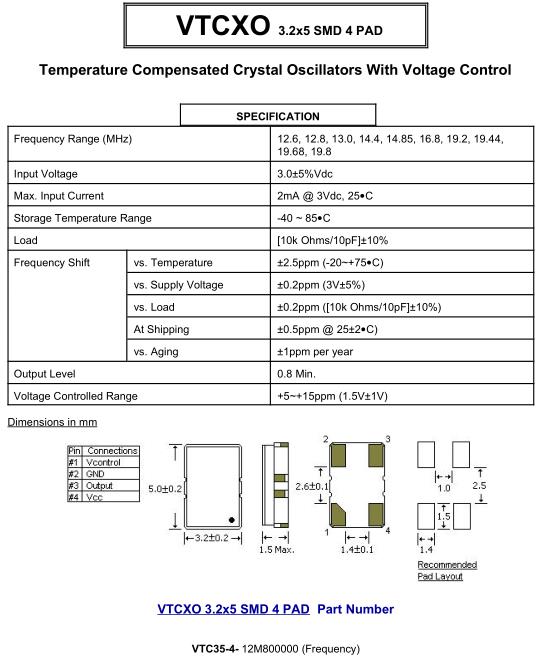 STD晶振,O-18晶振,VTC35-4-12M800000晶振
