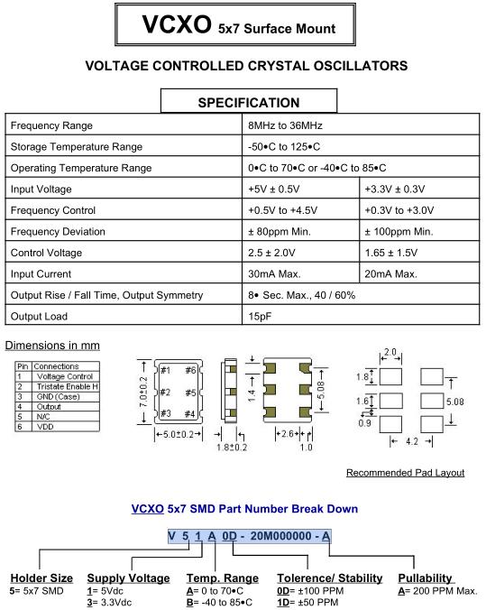 STD晶振,O-7晶振,V51A0D-20M000000-A晶振