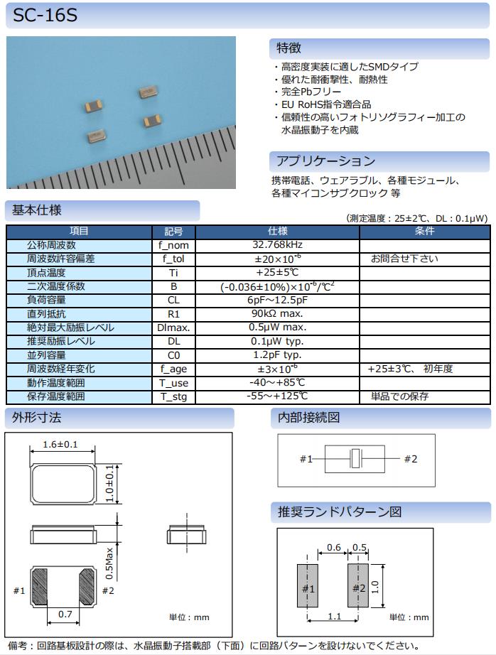 Q-SC16S0321070CAFF | Seiko精工晶振 | SC-16S | kHz Crystal (Tuning Fork) | 32.768kHz | ±10ppm |