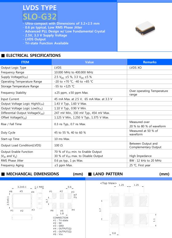 RMS Phase Jitter | 0.6 ps typ., 1 ps Max. | BW : 12 kHz to 20 MHz |