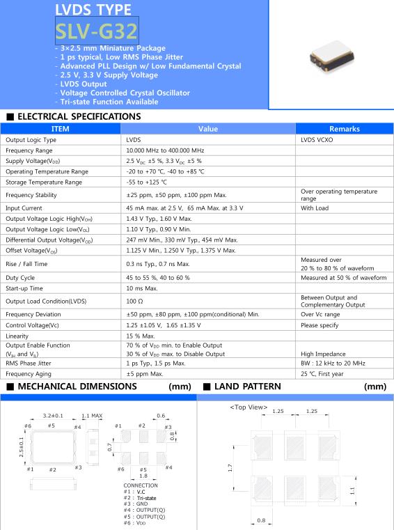 RMS Phase Jitter | 1 ps Typ., 1.5 ps Max. | BW : 12 kHz to 20 MHz |